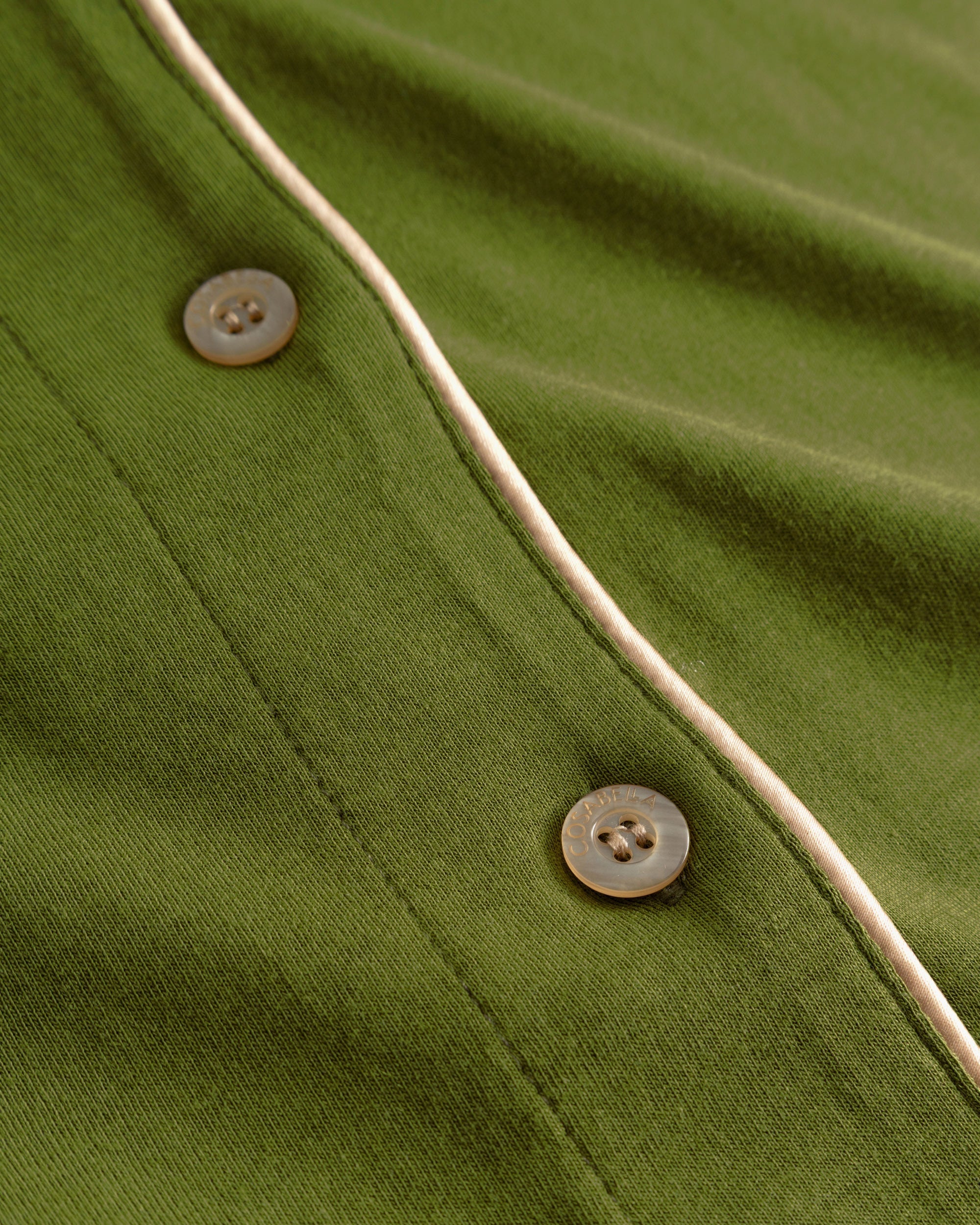 Sustainable, breathable pre-shrunk fabric, wrinkle-free, and pill-resistant.