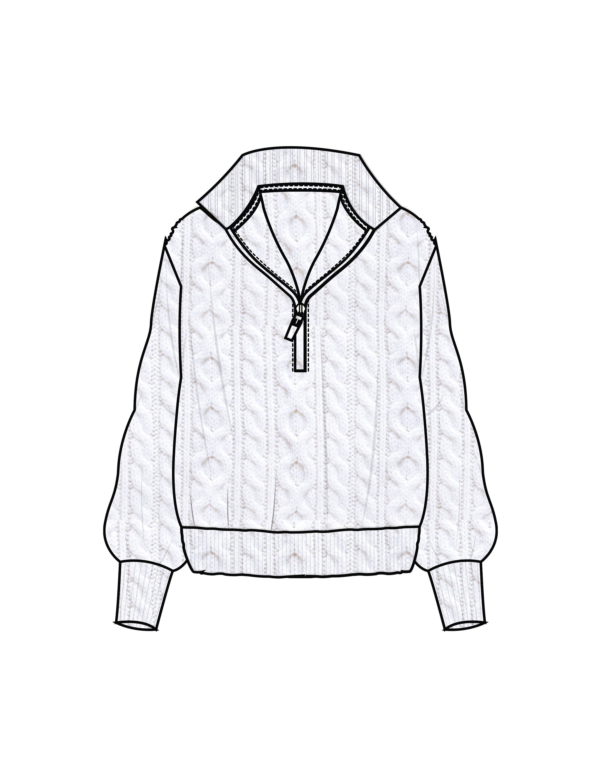 Embrace serene sophistication with our women's cable texture cozy 3/4 zip sweater.  This soft knit piece features an elegant cable texture and a flattering V-neck zipper design, perfect for adding a touch of freshness to your wardrobe. The rib-knit waistband ensures a comfortable and chic fit, making it an ideal choice for layering or wearing solo. Stay cozy and stylish.